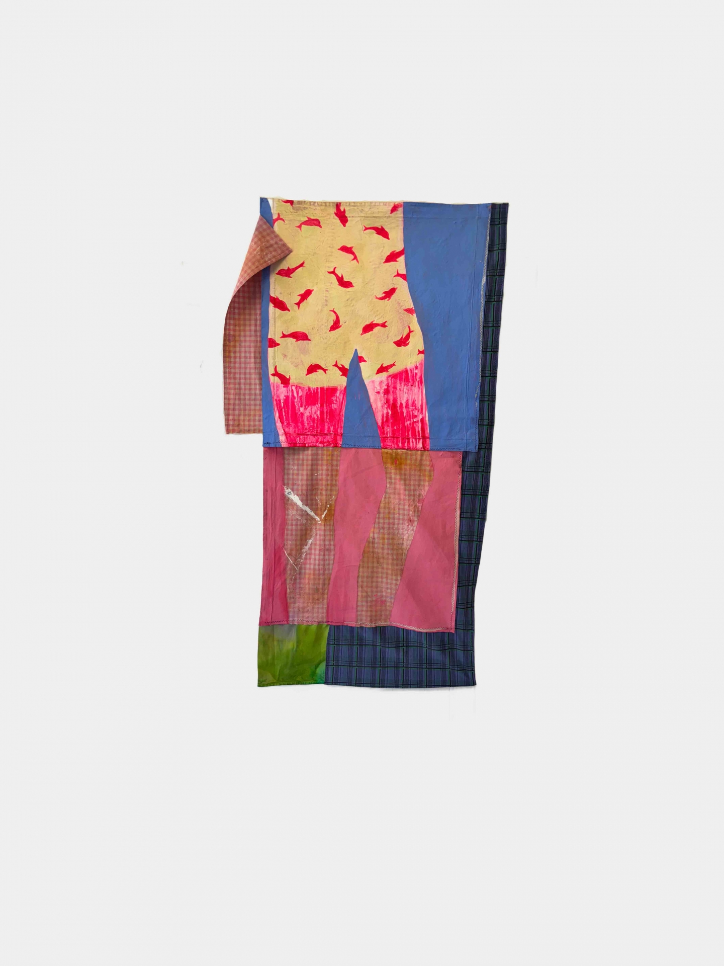 Dites lui que je pense (bien) à elle, peinture acrylique sur tissu coton 151 x 66 cm, 2020