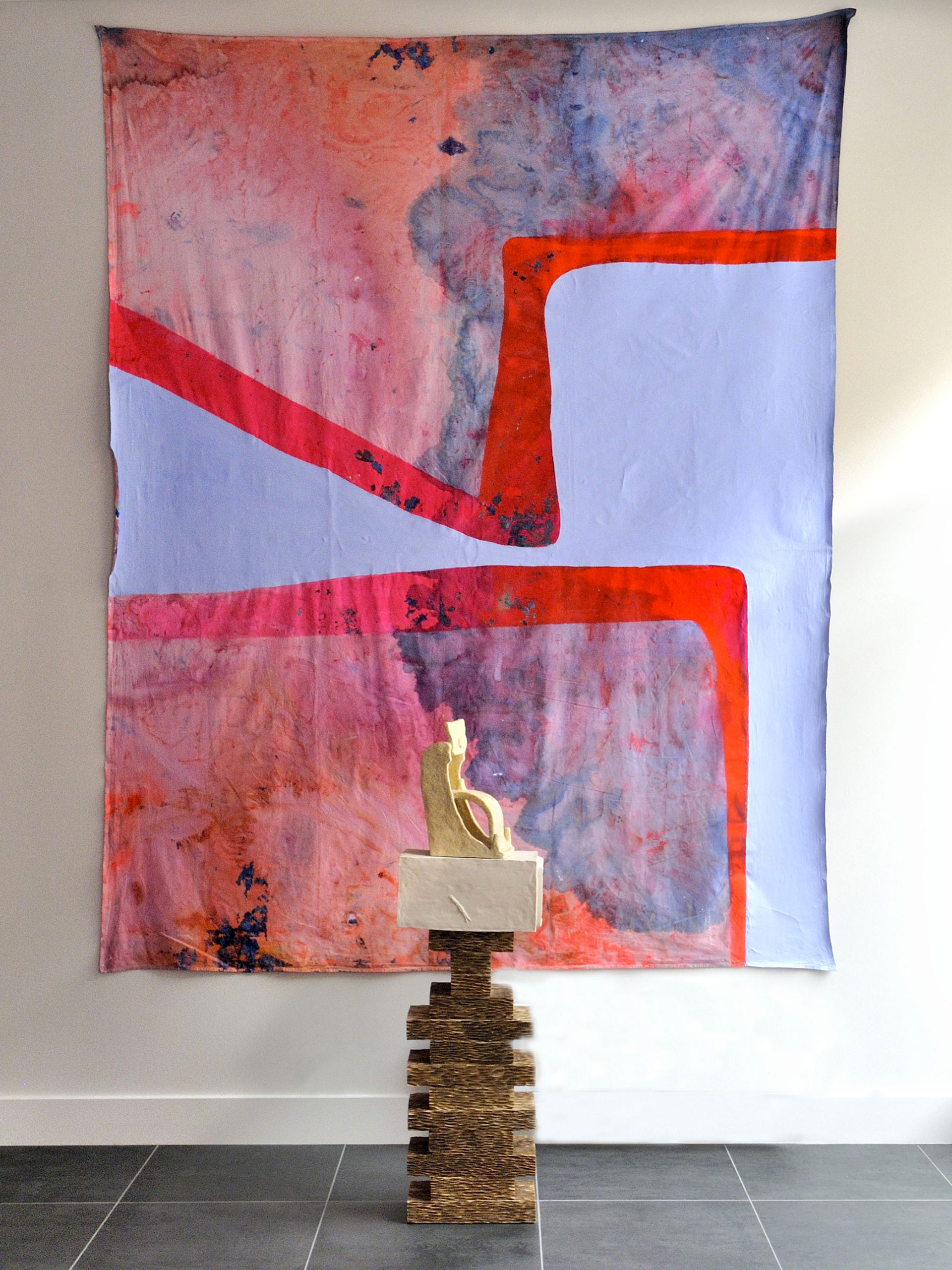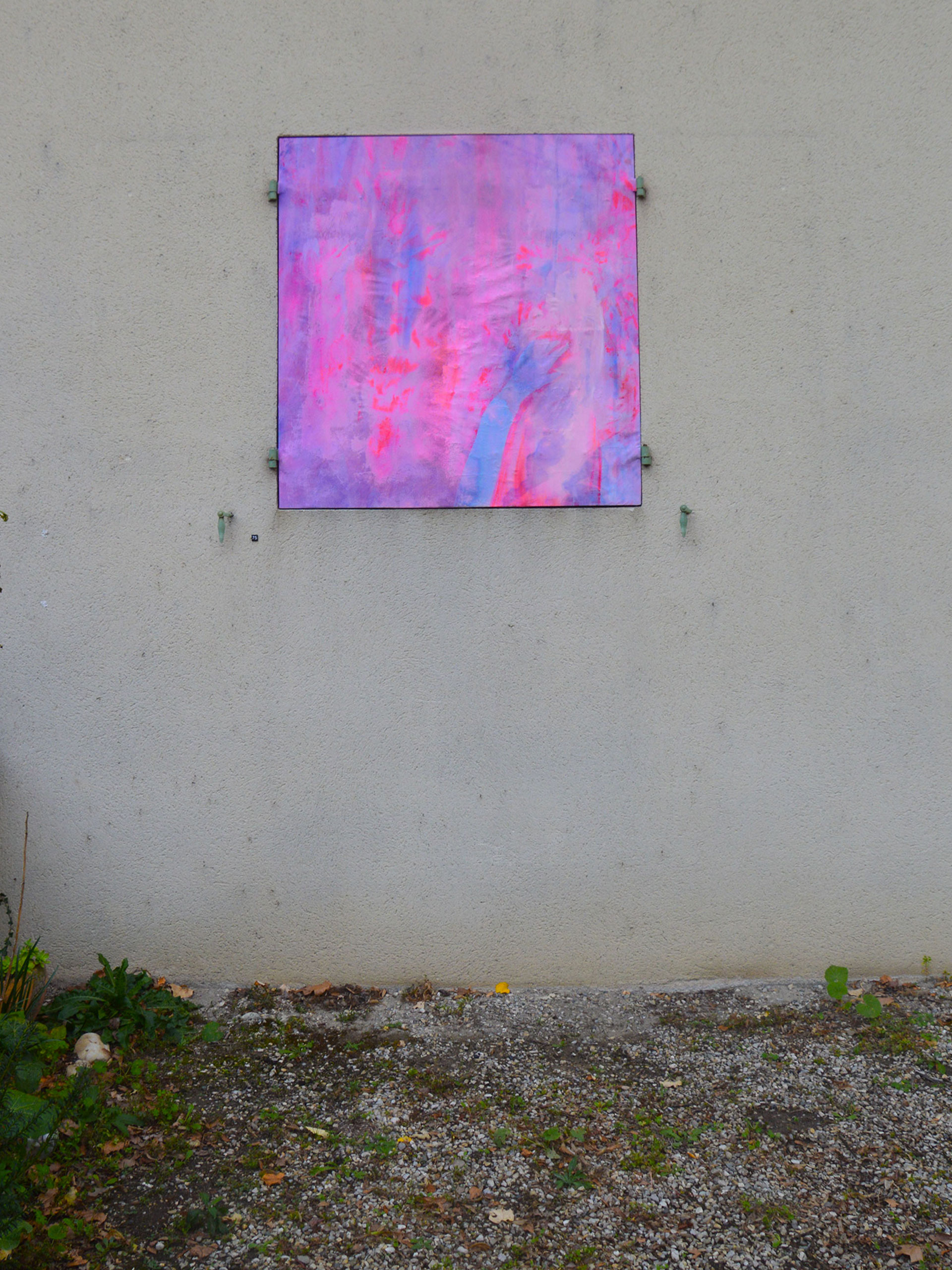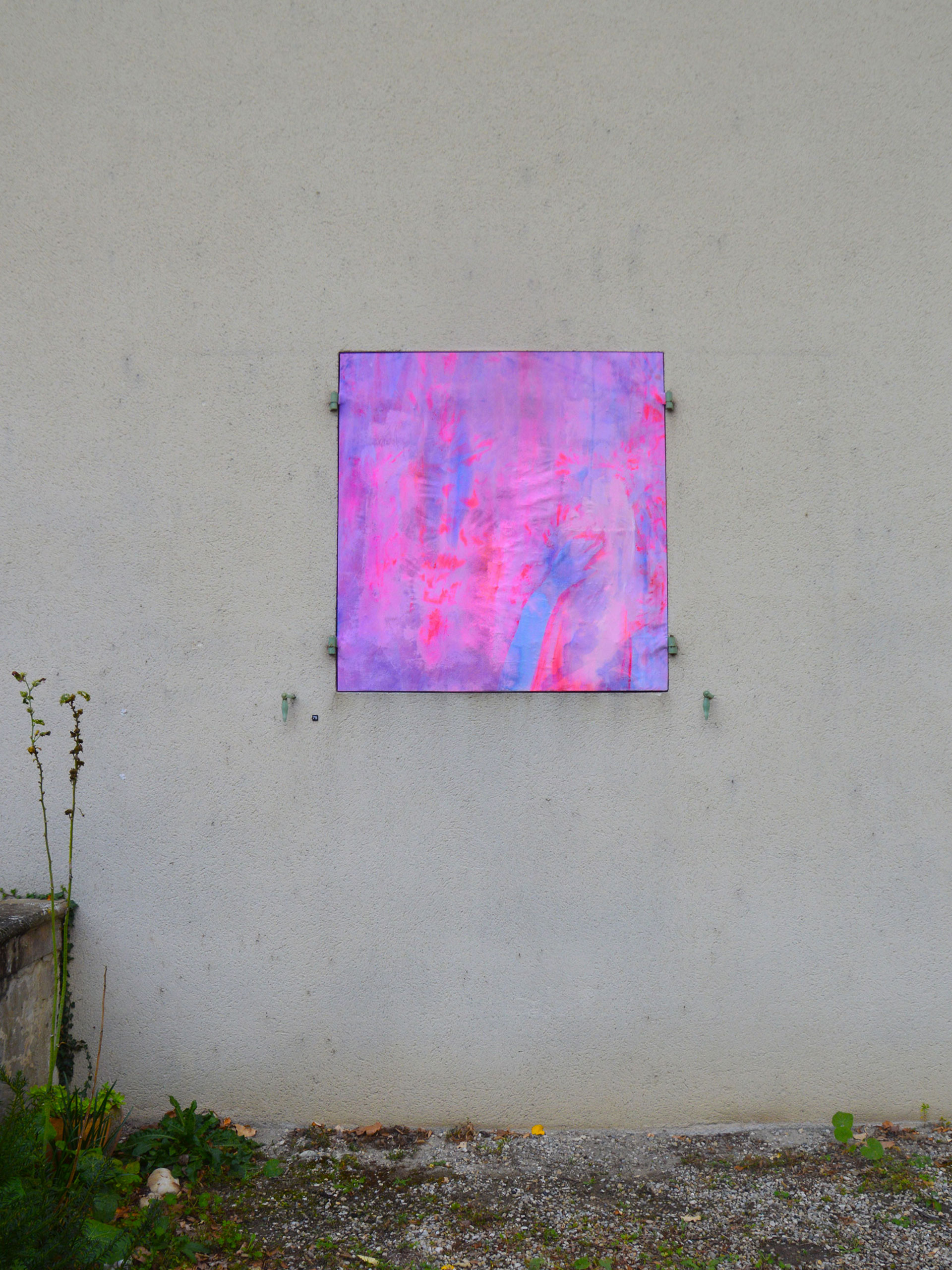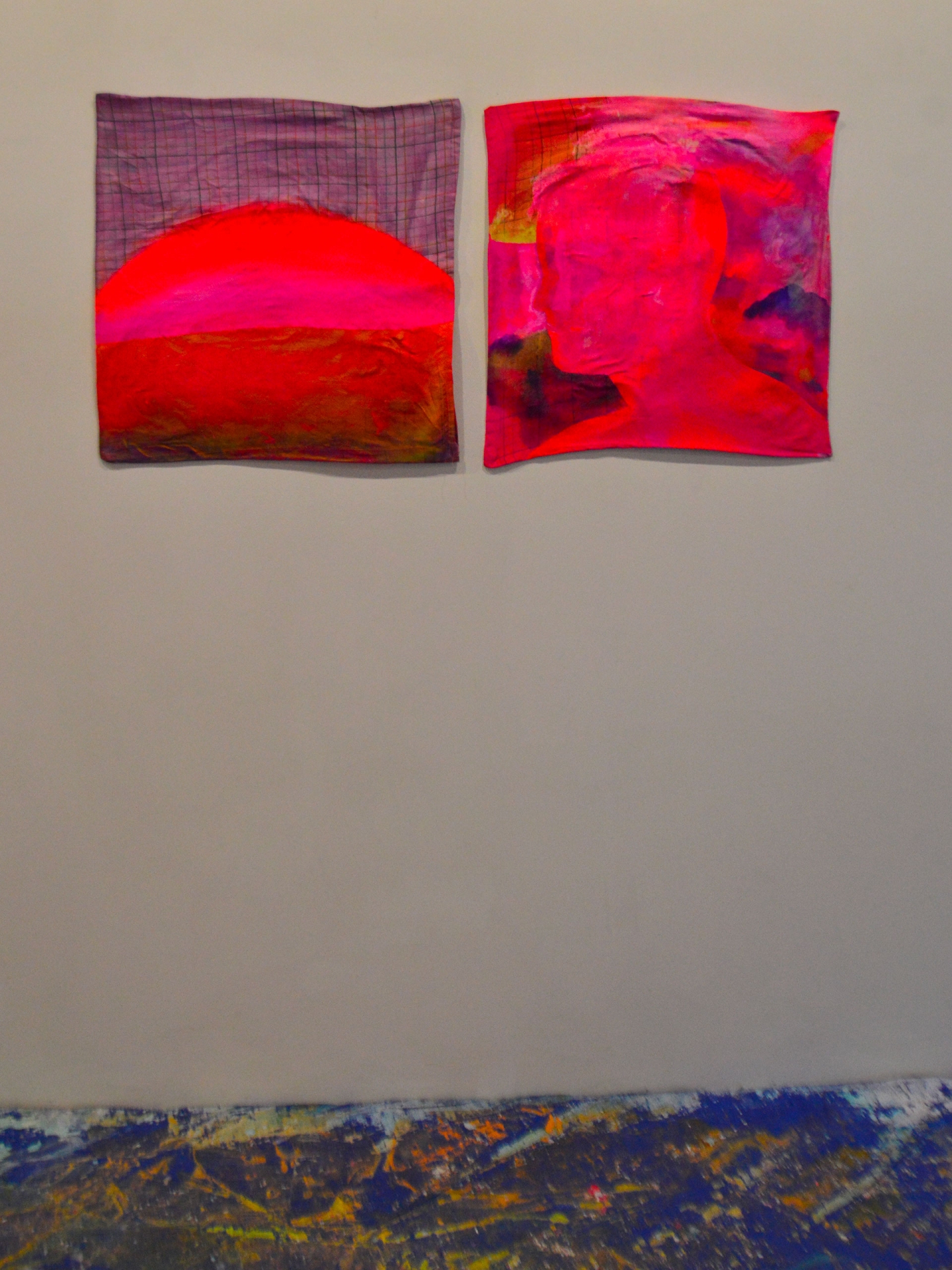 Duo, acrylique sur tissu & gré émaillé, avec Cédric Esturillo, 48 cm x 63 cm, Galerie B +, 2018