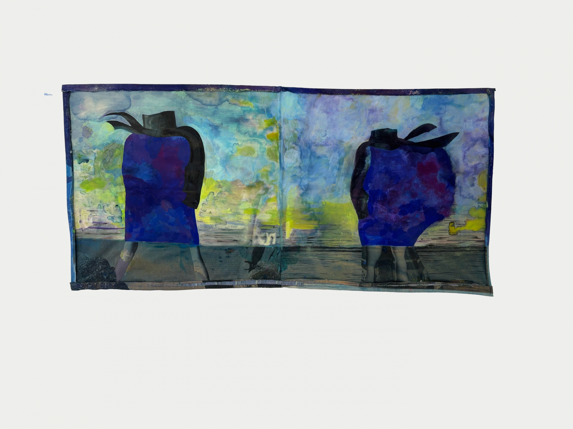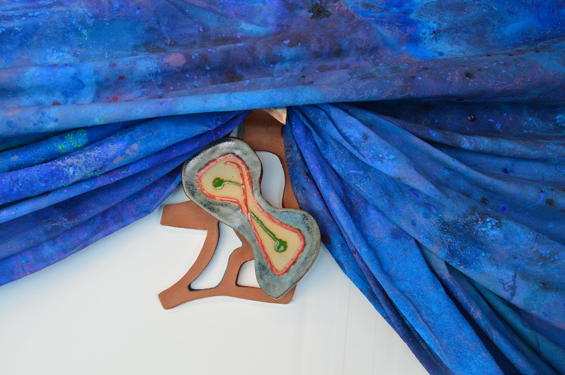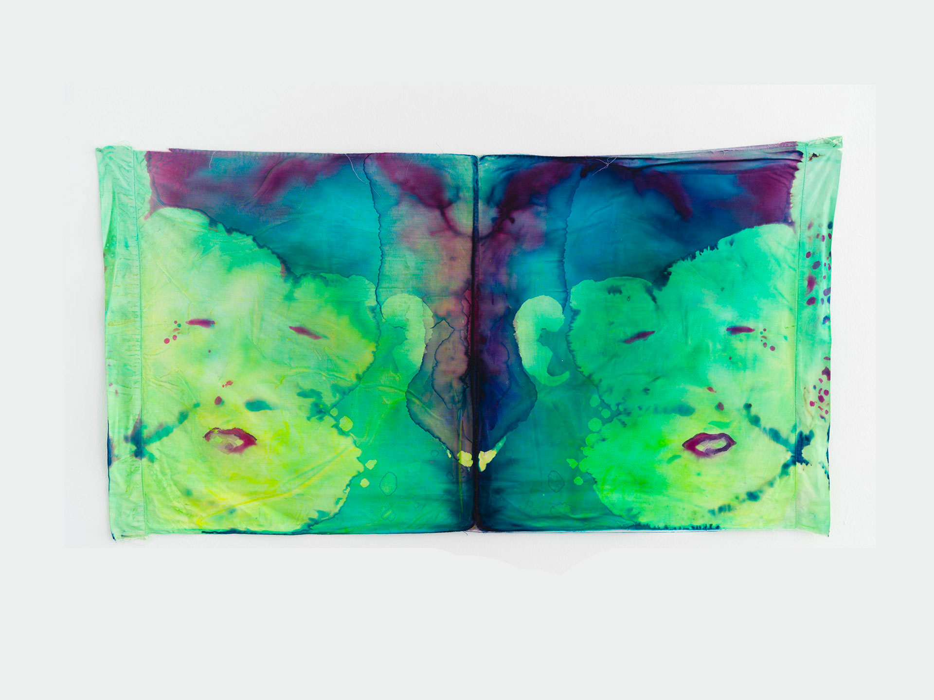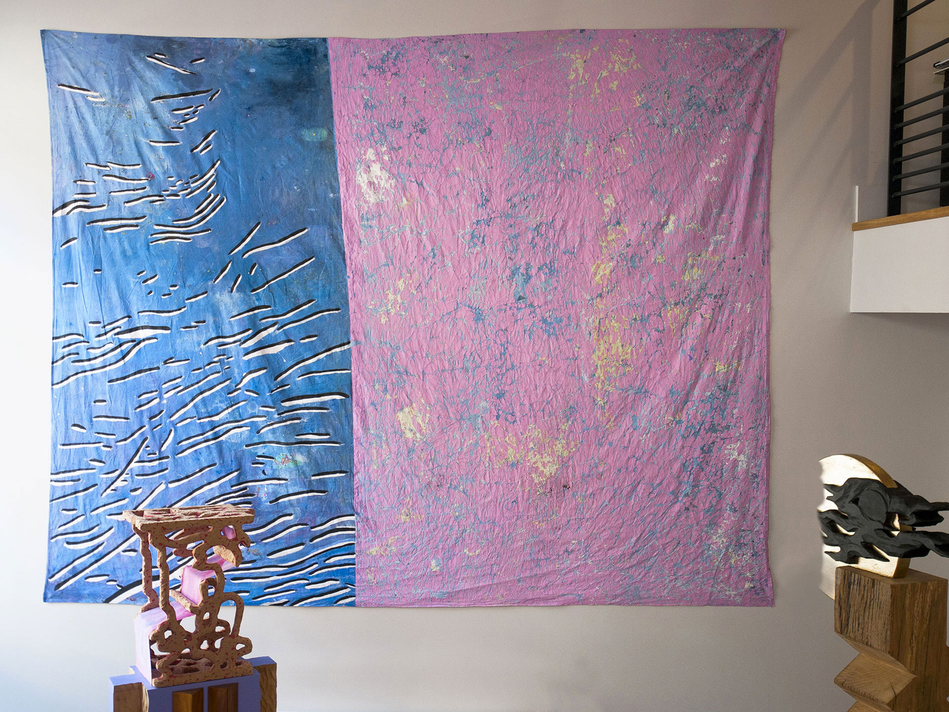 Duo, acrylique sur tissu & gré émaillé, avec Cédric Esturillo, 48 cm x 63 cm, Galerie B +, 2018