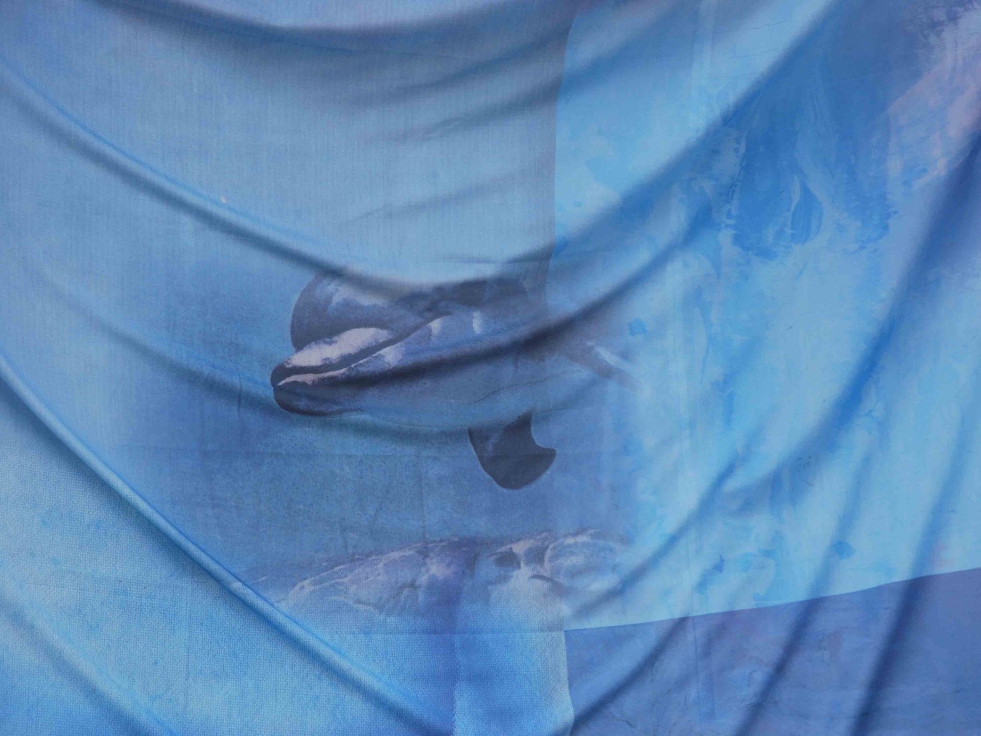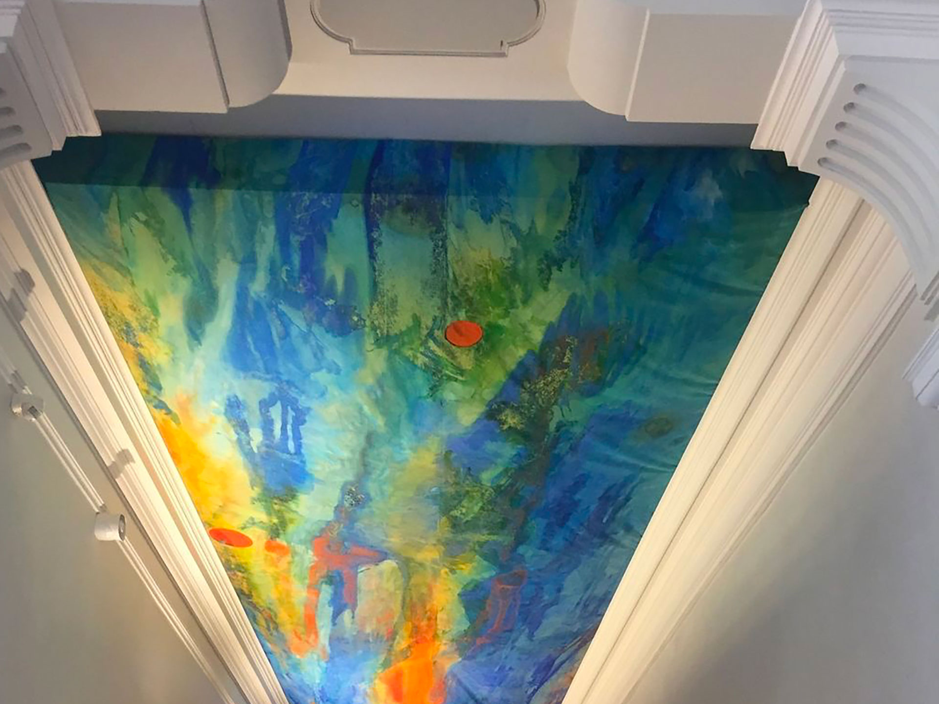 Bercer l’eau, peinture acrylique 230 x 220 cm, Institut Français de Bratislava, 2019