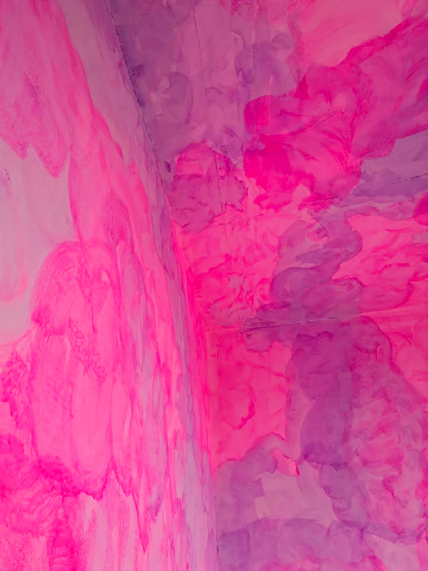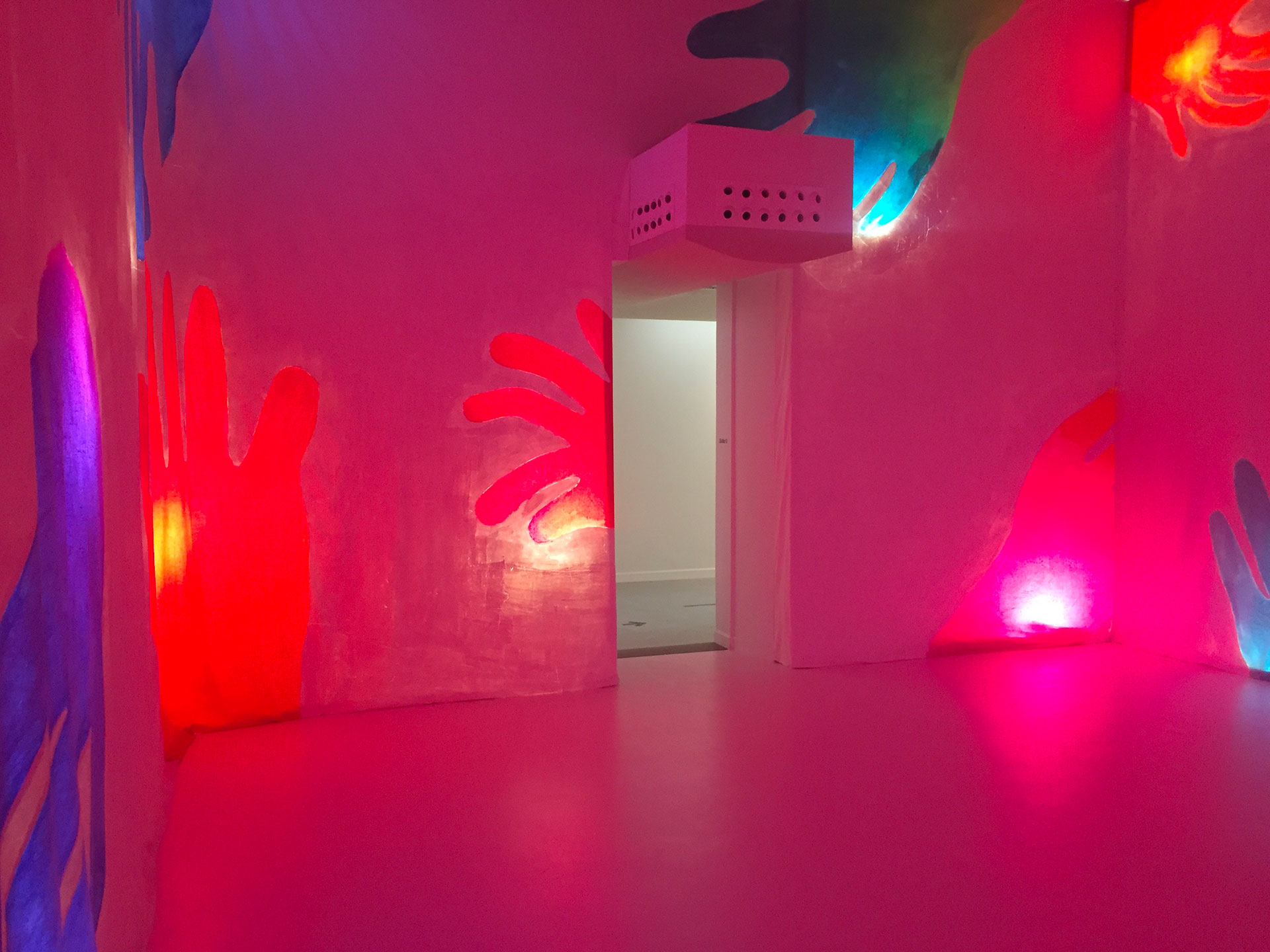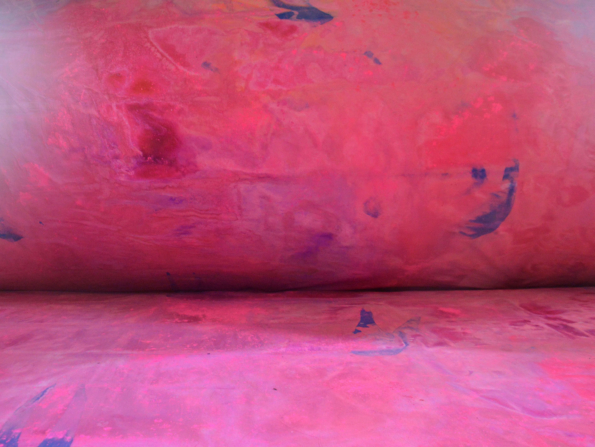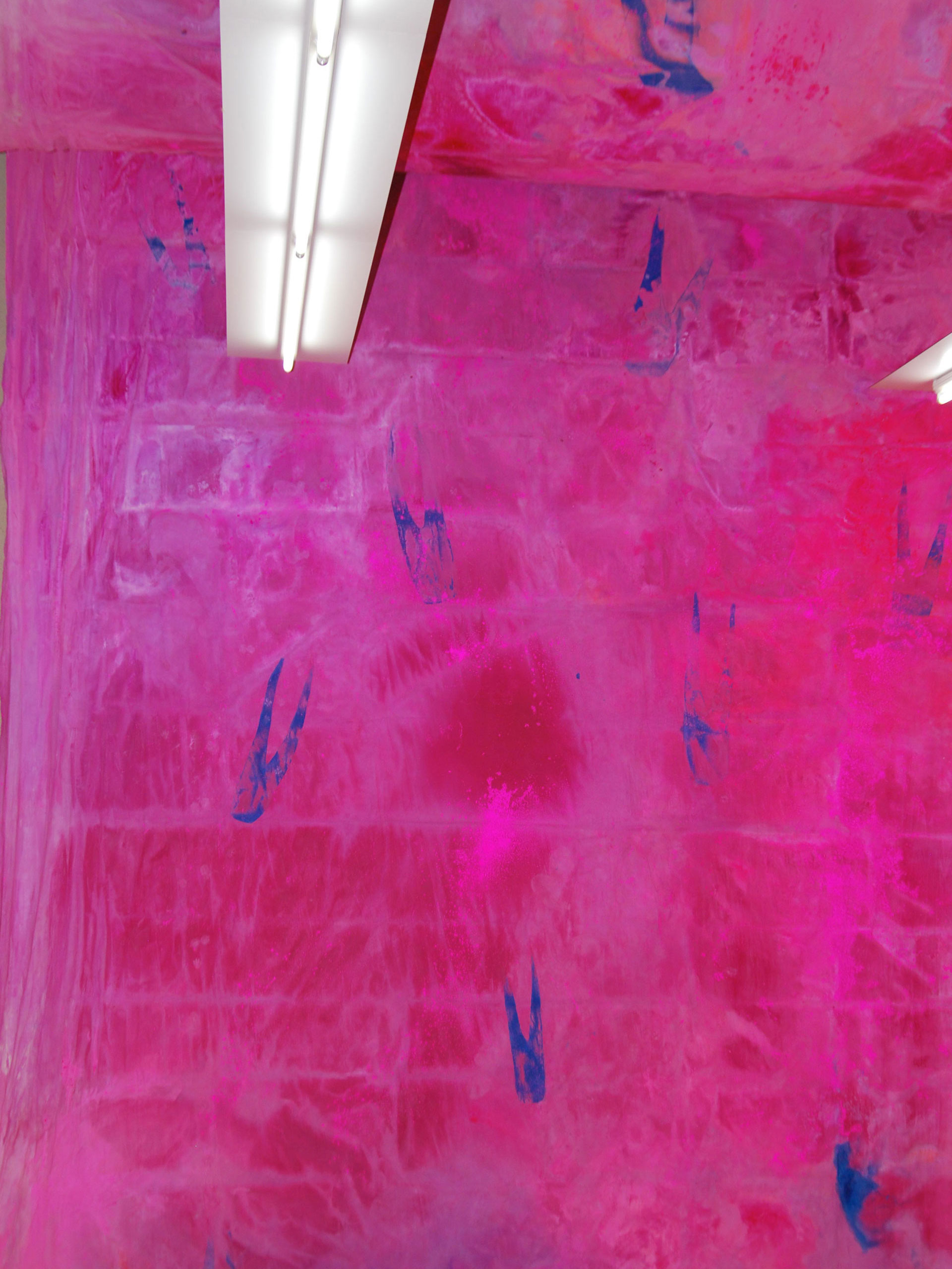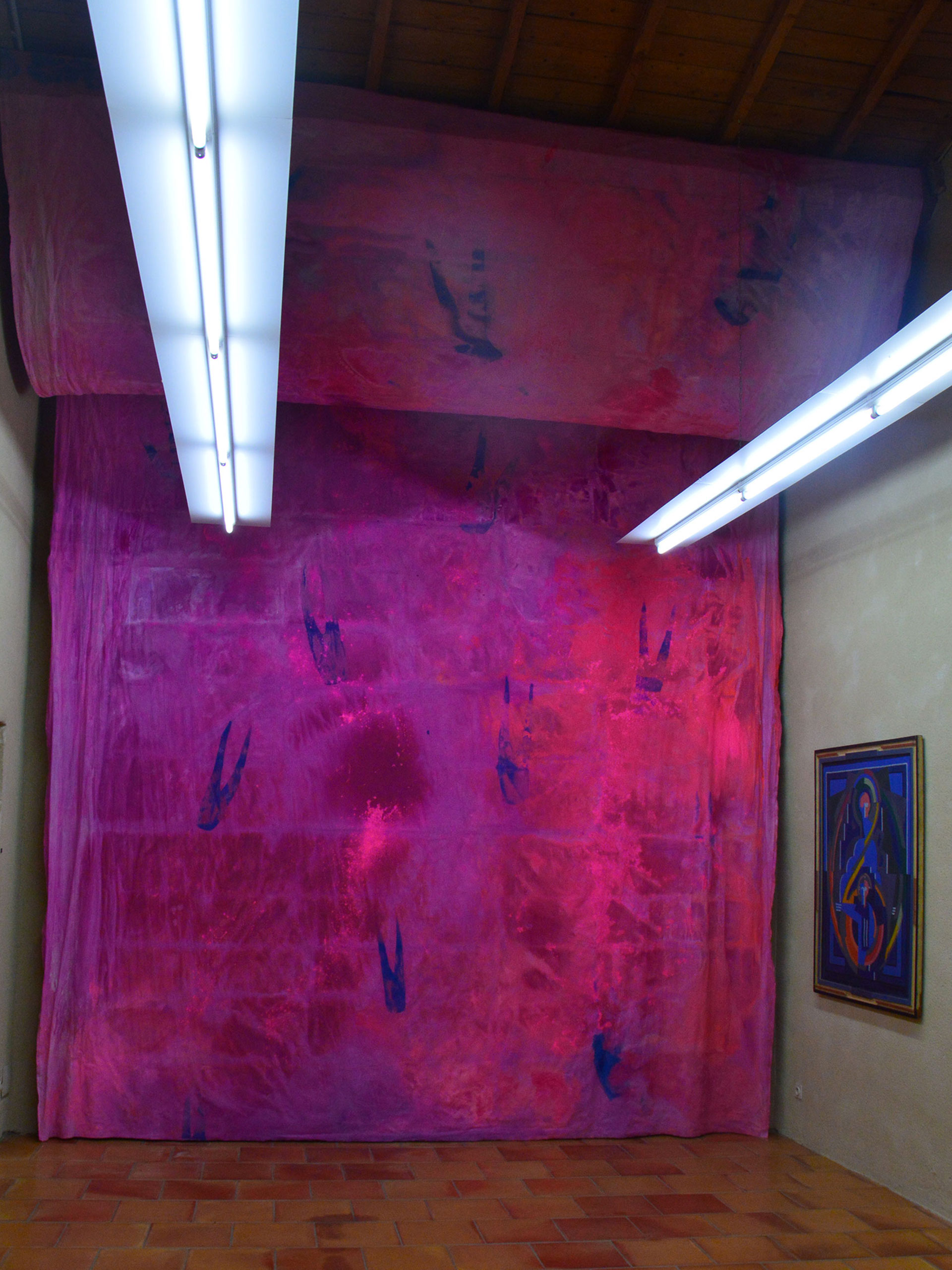 Bassin, peinture acrylique, projecteur de lumière noire, 600cm x 220cm, Galerie Roger Tator, 2017, photographie de David Desaleux