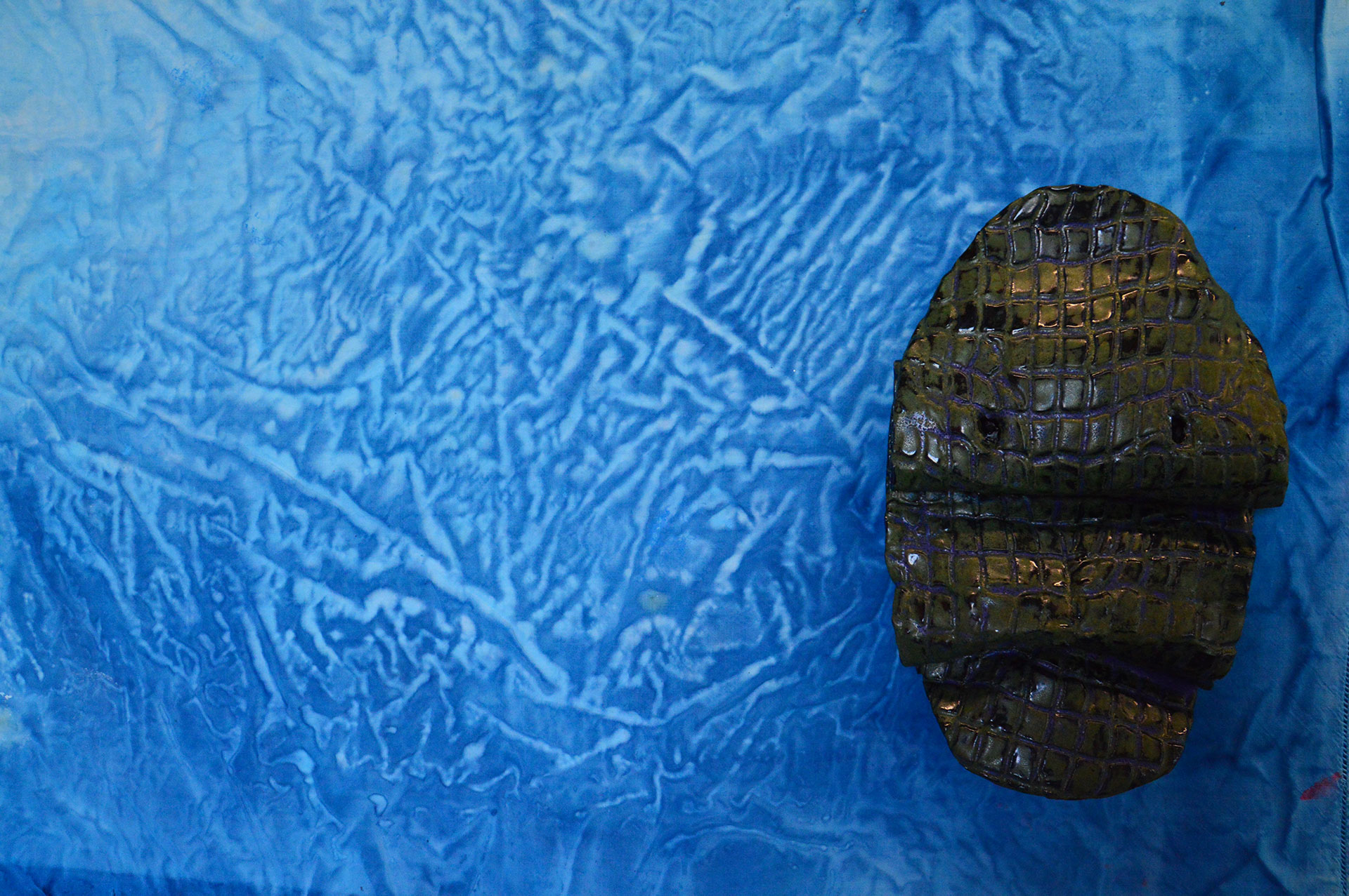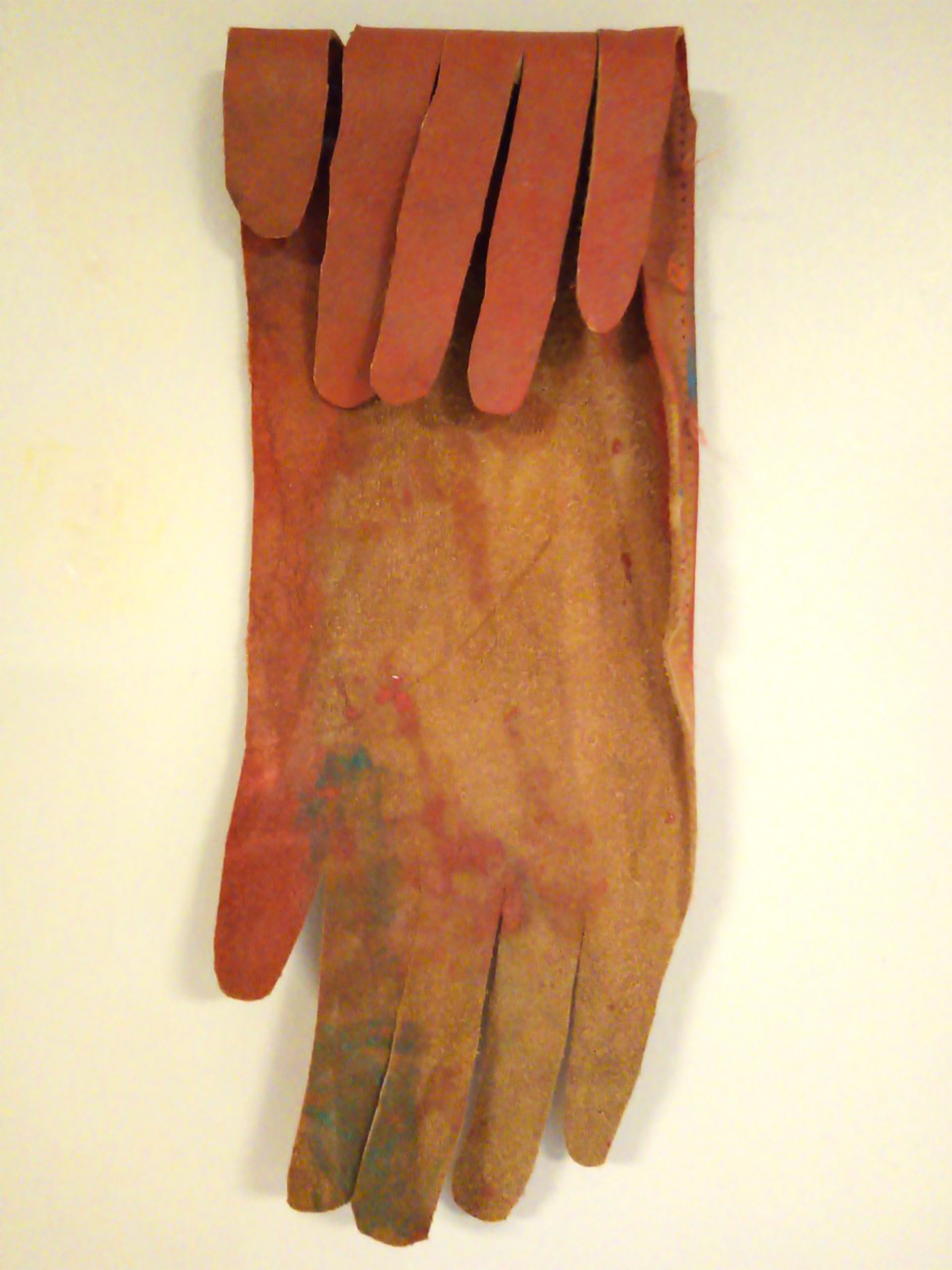 Amouraché, 2020 peinture acrylique sur cuir 24 x 12 cm, 2020