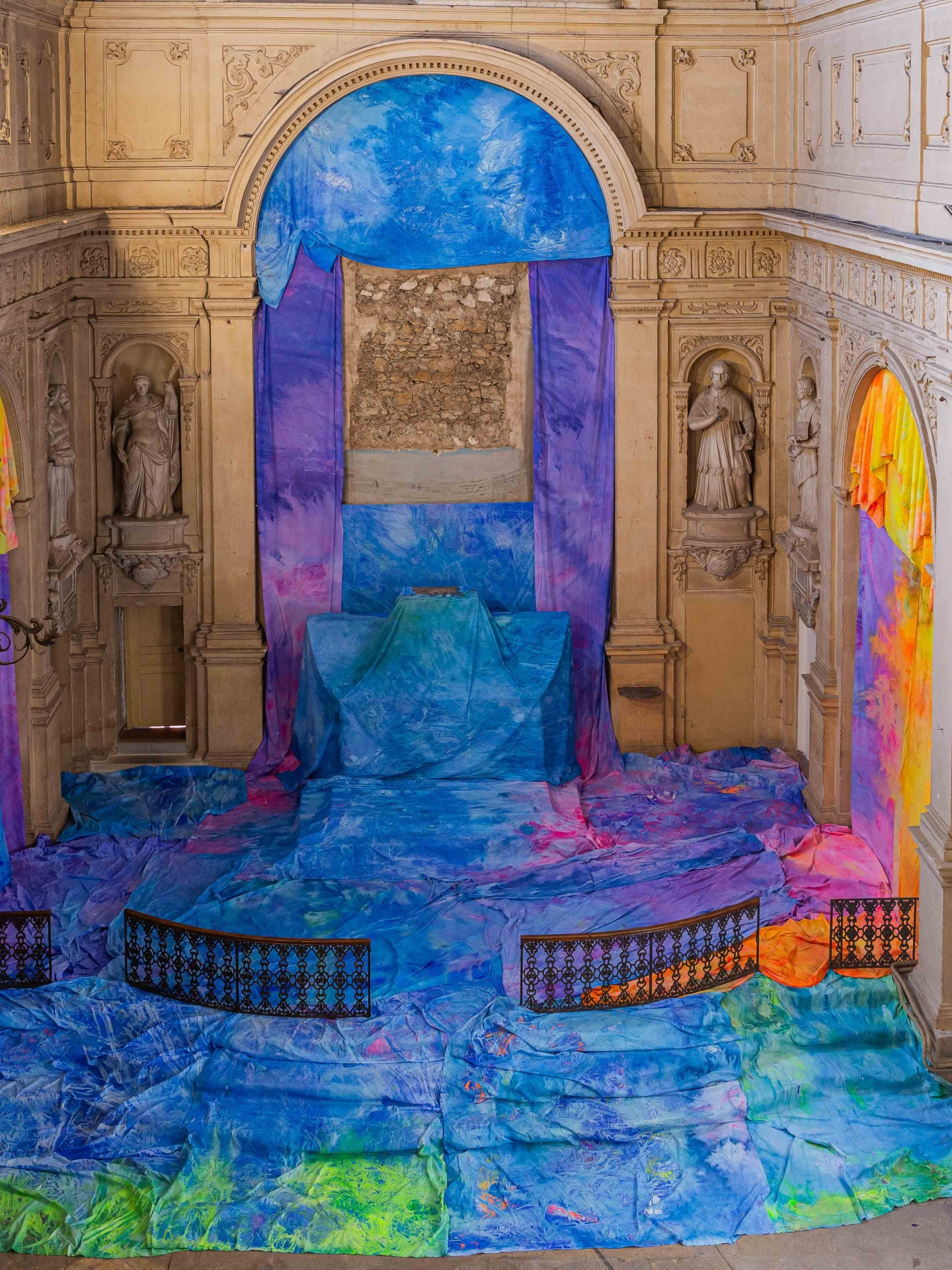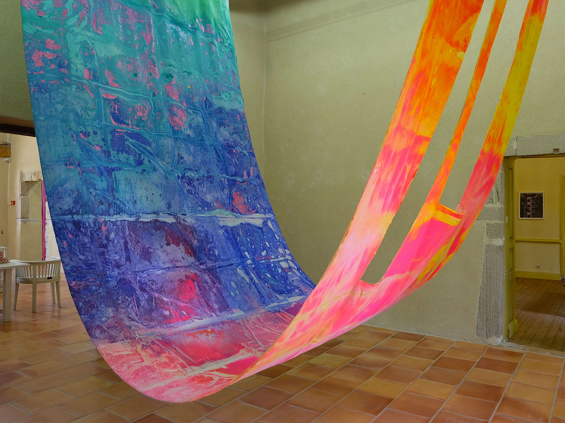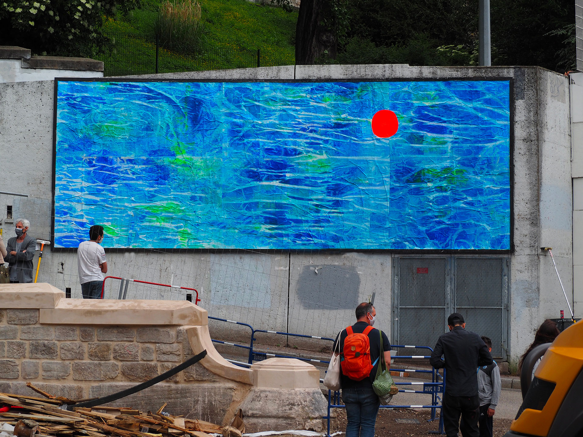 Fontaine, acrylique, vinylique, paillettes, pigments, 4m30x7m50, Moly-Sabata, 2017