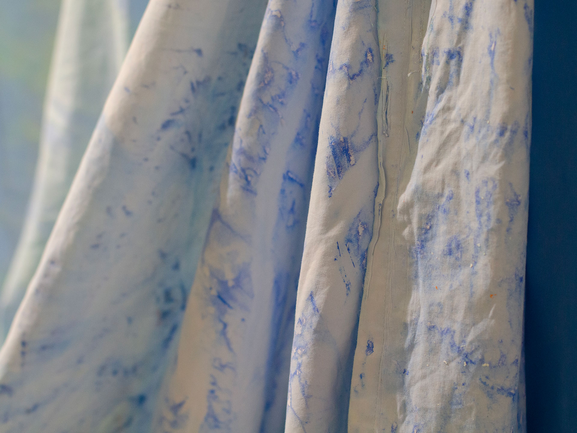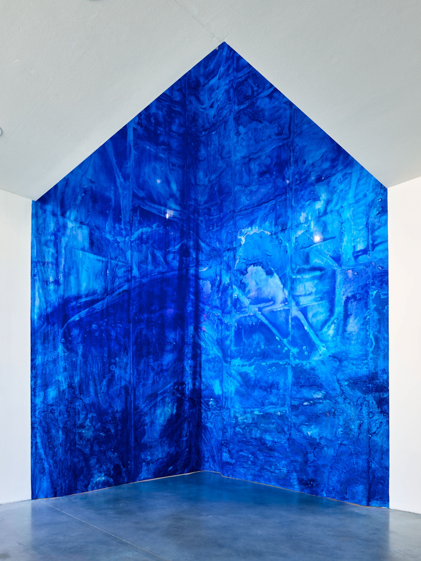 Rosées bleues, peinture acrylique et vinylique, 700 x 4500 cm, Institut d’art Contemporain de Villeurbanne, 2019,